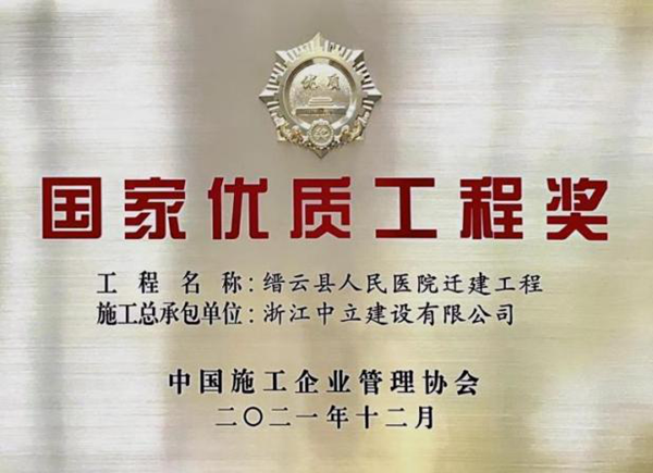 我公司承建的縉云縣人民醫(yī)院遷建工程榮獲2020—2021年度國(guó)家優(yōu)質(zhì)工程獎(jiǎng)。這是中立獲得的第一個(gè)國(guó)家優(yōu)質(zhì)工程獎(jiǎng)項(xiàng)目,也是麗水本地企業(yè)第一個(gè)獲國(guó)家優(yōu)質(zhì)工程獎(jiǎng)項(xiàng)目。