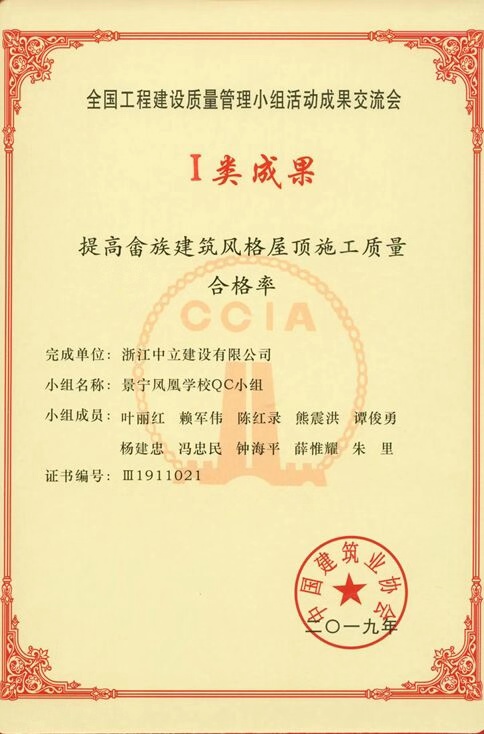 該成果在2019年全國(guó)工程建設(shè)質(zhì)量管理小組活動(dòng)成果交流會(huì)發(fā)布,并獲得全國(guó)工程建設(shè)質(zhì)量管理小組活動(dòng)成果Ⅰ類成果獎(jiǎng),是該批(第三批,共四批)發(fā)布的浙江省唯一的一個(gè)Ⅰ類成果,這也是麗水地區(qū)首個(gè)全國(guó)工程建設(shè)質(zhì)量管理小組活動(dòng)成果Ⅰ類成果。