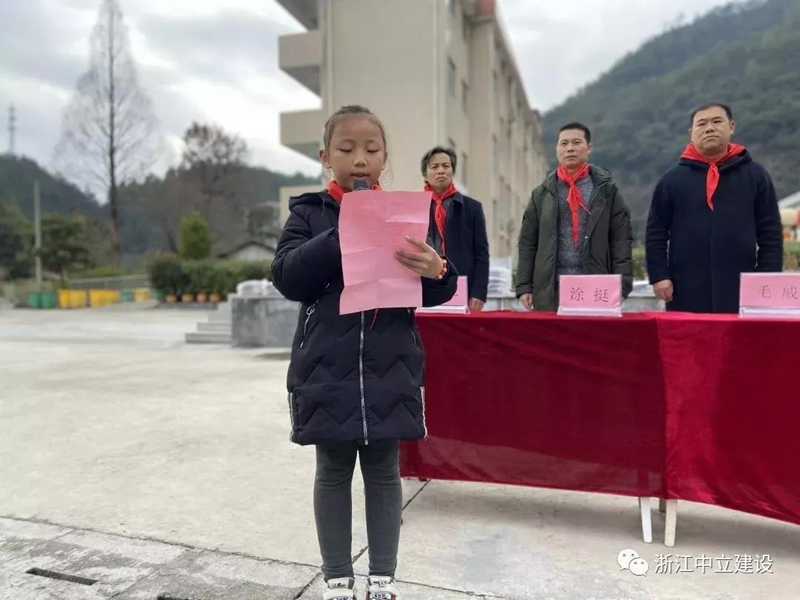 新年伊始,恰逢臘八,浙江中立建設(shè)有限公司帶著81套校服走進(jìn)遂昌大山深處的黃沙腰小學(xué),給大山里的孩子送去冬日里的溫暖。公司副總經(jīng)理葉麗紅、項(xiàng)目負(fù)責(zé)人曹亮、黃沙腰鎮(zhèn)鎮(zhèn)長毛威、黃沙腰鎮(zhèn)人大主席涂挺、遂昌縣教育局黨組成員王其孔、黃沙腰小學(xué)校長葉益明出席了捐贈(zèng)儀式。在捐贈(zèng)儀式上葉麗紅希望同學(xué)們刻苦學(xué)習(xí),立志成才,不負(fù)韶華,回報(bào)社會(huì),回報(bào)祖國。葉校長致辭對(duì)捐贈(zèng)校服的善舉表述了衷心的感謝。校優(yōu)秀少先隊(duì)員王夢(mèng)媛致感謝詞:“叔叔阿姨們,請(qǐng)相信我們,我們會(huì)努力學(xué)習(xí),去創(chuàng)造一片屬于自己的絢麗天空;我們會(huì)努力學(xué)習(xí),早日成為國家的棟梁,為家鄉(xiāng)建設(shè)貢獻(xiàn)自己的力量。我們堅(jiān)信一定不會(huì)讓你們失望!”